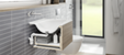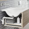 De nos jours, on a l’embarras du choix en termes de meubles de salle de bains avec lavabo. Il y en a pour tous les styles. Mais ces meubles doivent être aussi fonctionnels que possible. C’est là qu’intervient le nouveau système d’évacuation à faible encombrement de Viega. Le siphon peut être ajusté pendant l’installation et constitue la solution idéale pour les salles de bains sans obstacle. Les lavabos sans sous-meuble peuvent également être rendus accessibles aux fauteuils roulants ultérieurement. Fini de passer un temps fou à installer un trop-plein caché !